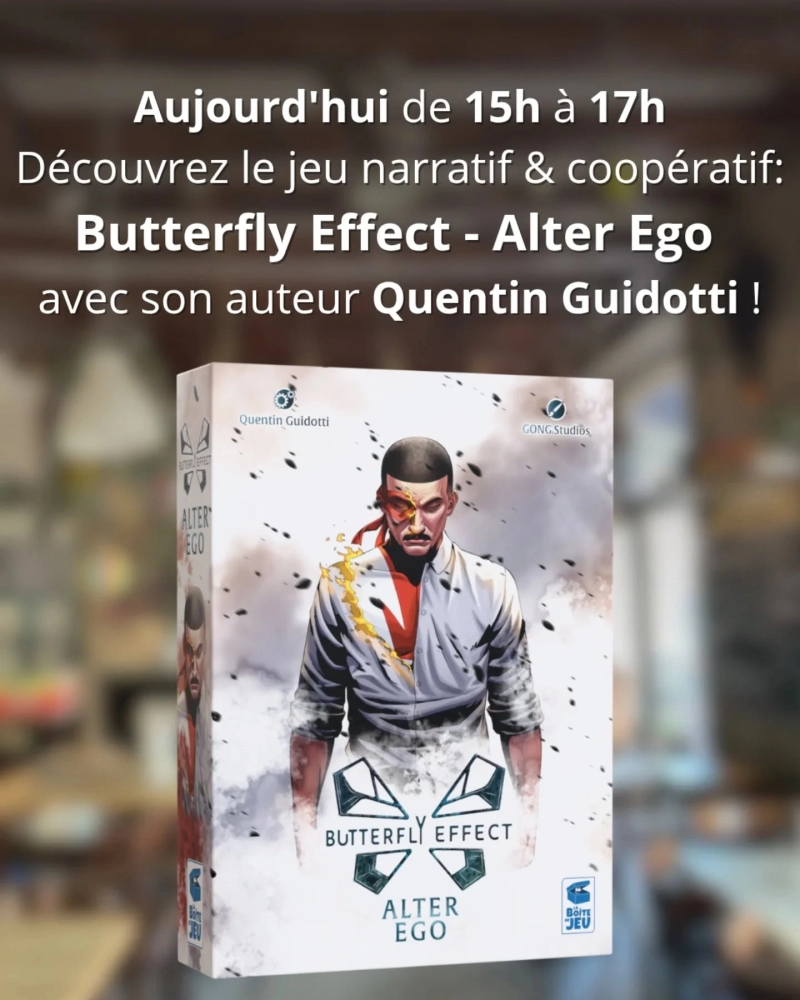 Aujourd’hui de 15h à 17h, venez découvrir le jeu narratif & coopératif: Butterfly Effect en compagnie de son auteur Quentin Guidotti !