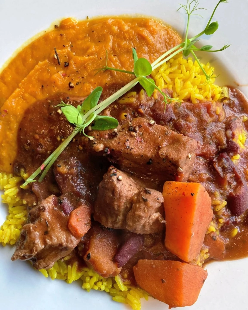 A midi, on se réchauffe au soleil du Mexique, avec un Chili con carne au porc et patates douces. C’est parfait pour se réchauffer ! Bon app’ !