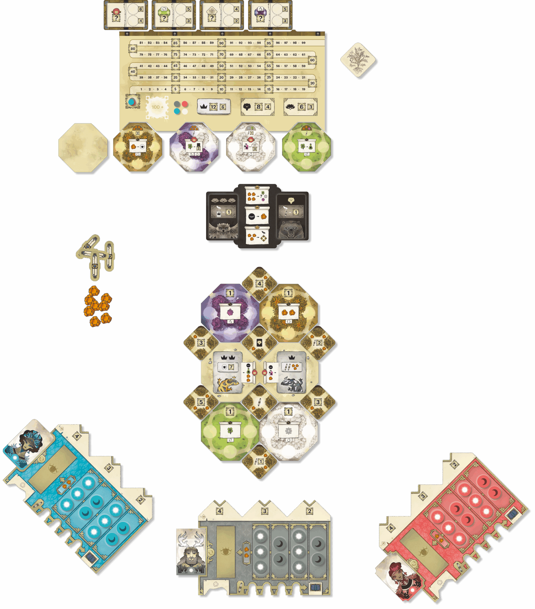 Vous disposerez, lors de chaque manche, d'un nombre déterminé d'apprentis à poser et à faire travailler pour générer des ressources et des Points de Vénération, qui sont les points de victoire du jeu.