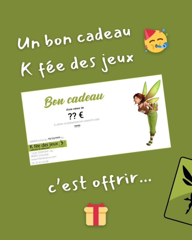 Un bon cadeau K fée des jeux, c’est offrir: