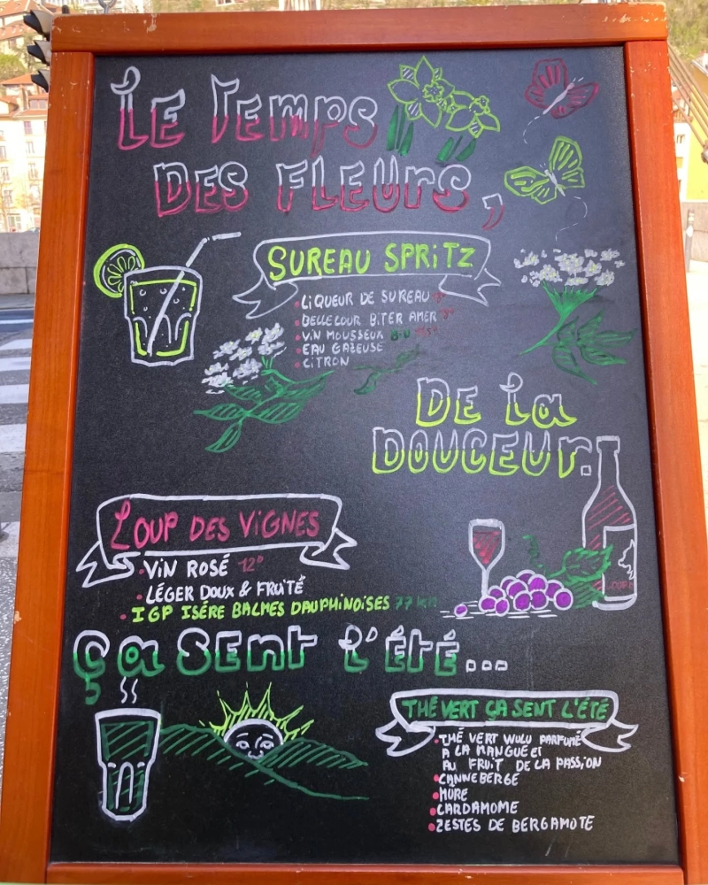 Une belle ardoise avec quelques suggestions de boissons printanière 💐