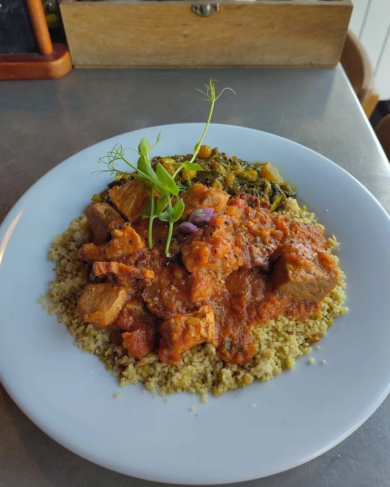 Au menu ce midi un sauté de porc à la tomate et au paprika fumé, des fenouils au cidre & du blé ...