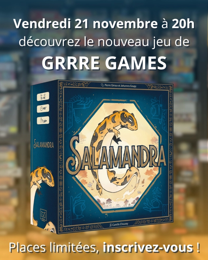 📣 Vendredi 21 novembre à 20h, GRRRE GAMES vous propose de découvrir leur dernier jeu: Salamandra !